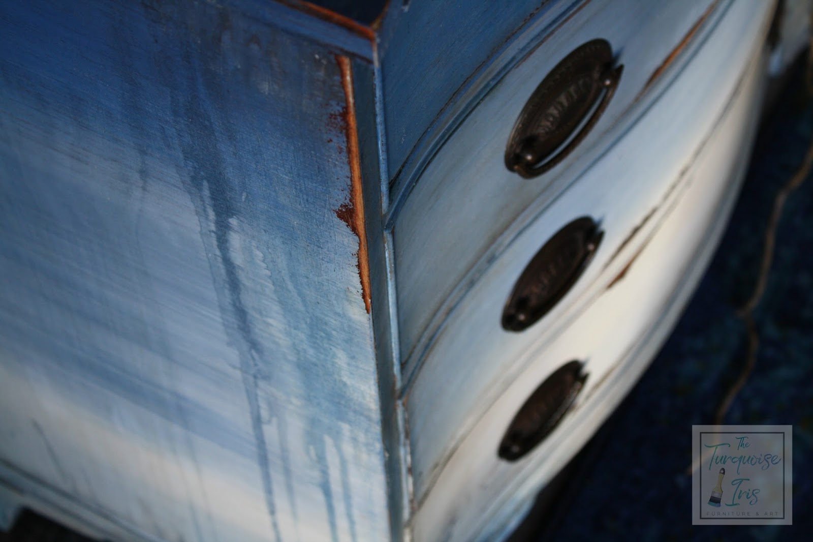 I used paint from CeCe Caldwell's Paints for the two furniture makeovers I'm sharing today. For this ombre finish, I used Windsor Blue, Antique White and Blue Montana Sky. I think I could use these colors on every single piece I paint! The coverage is amazing and if you're a painter also, you know that shades of blue cover so easily...and I like easy!